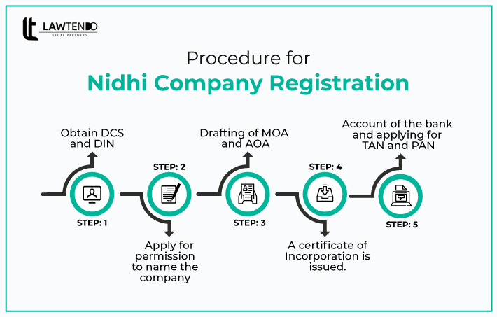 The partners of a Nidhi company need to apply for the Director’s Identification Number (DIN) and Digital Signature Certificate (DSC). DIN is issued by the MCA and DSC is an online signature used in all e-filing processes. This step is not needed if a director already owns DIN and DSC.